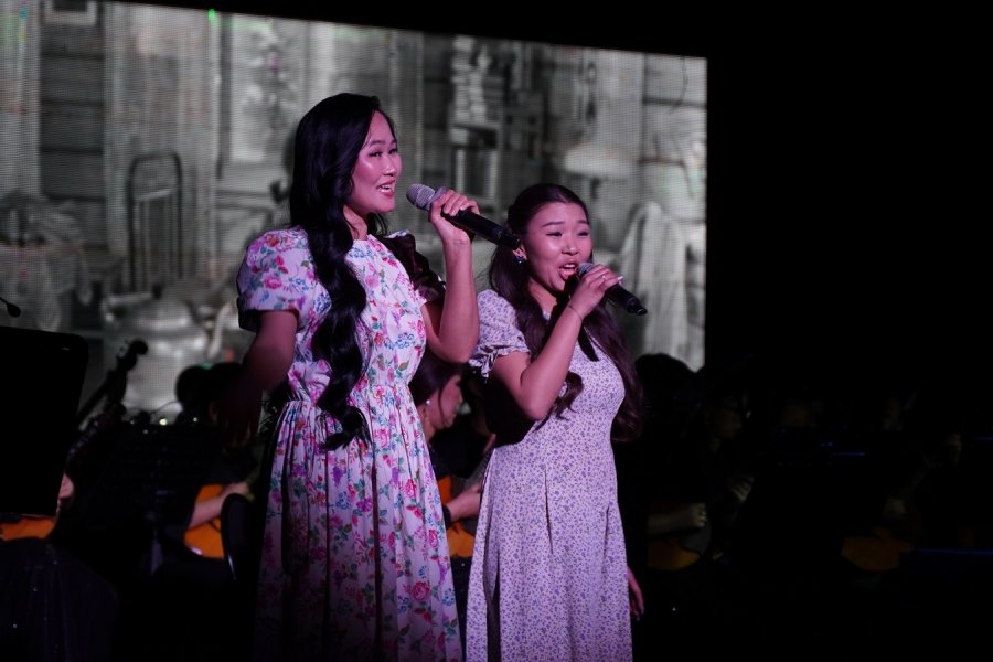 Ведущий концерта, талантливый Белек Бавуу, мастерски погружал зрителей в мир кино, рассказывая увлекательные истории, таящиеся за каждой мелодией. На сцене выступали замечательные вокалисты Тувгосфилармонии: Экер Кара-Сал, Дамырак Сюрюн, Алия Ондар, чьи голоса придавали исполняемым композициям невероятную глубину и эмоции.