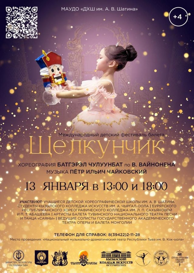 13 января в 13:00 и в 18:00 в Национальном музыкально-драматическом театре Республики Тыва им.В.Кок-оола впервые пройдет Международный детский фестиваль балета "Щелкунчик".