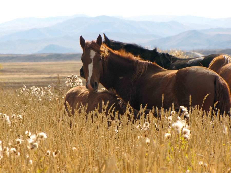 Когда наступают первые осенние холода и колосятся травы, табуны спускаются с гор на осенние пастбища. Это подтаежные места, предгорья, долины рек с нетронутым за лето травостоем. От состояния осенних пастбищ зависит то, как лошади проведут зиму: сумеют набрать жировые запасы, значит будет хороший приплод, хватит сил на всю длинную и суровую зиму для добычи корма из-под глубокого снега, а также на то, чтобы драться или уходить от волков, их организм справится с болезнями.